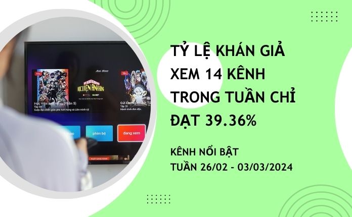 Kênh nổi bật tuần 11/03 –17/03/2024: Tỷ lệ khán giả xem 14 kênh trong tuần giảm còn 38.67% 22/03/20242203/2024 Đọc tiếp