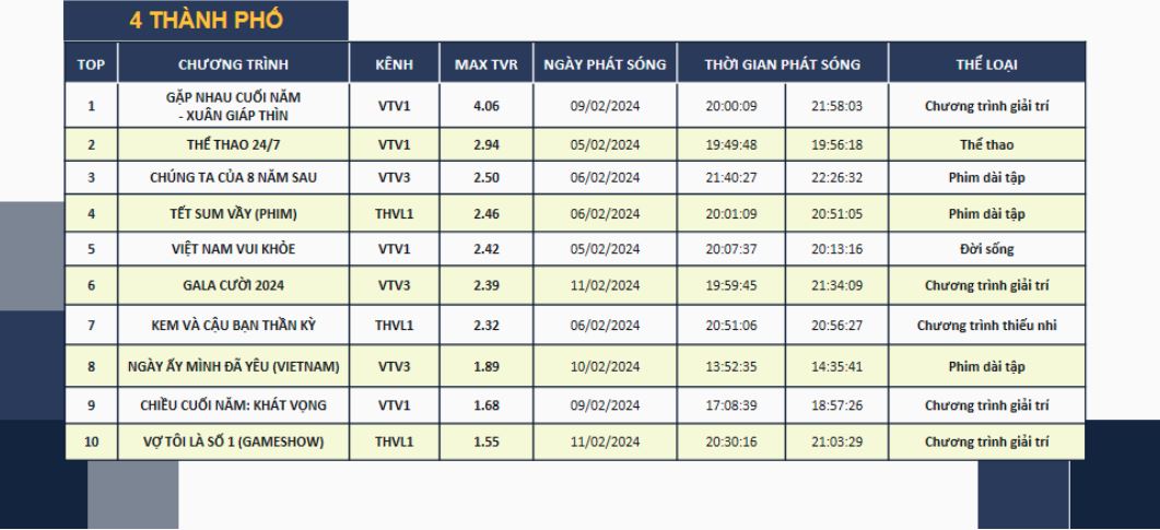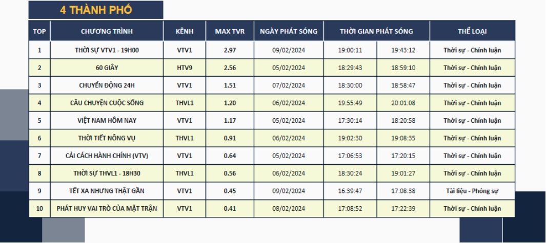 MAX TVR: TOP 10 chương trình Thời sự – Chính luận tại 4 thành phố