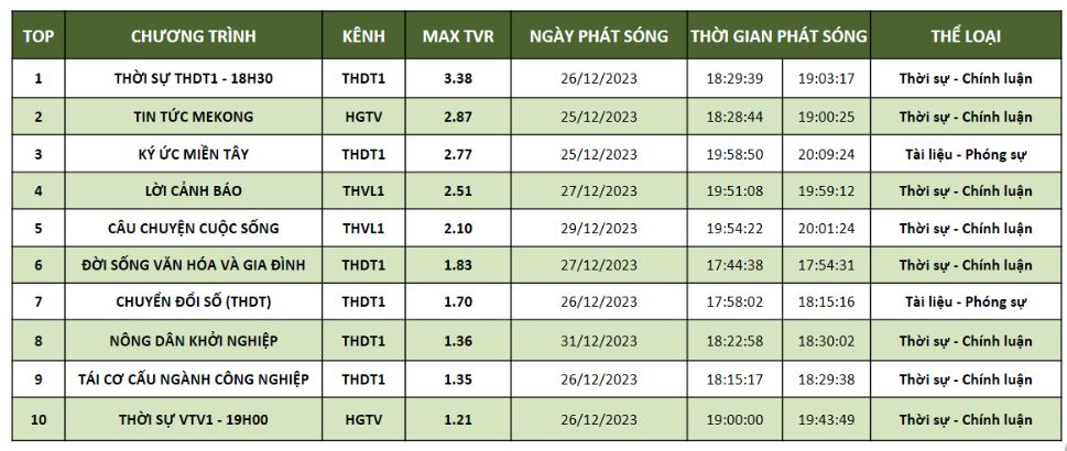 MAX TVR: TOP 10 chương trình Thời sự – Chính luận tại Đồng bằng sông Cửu Long