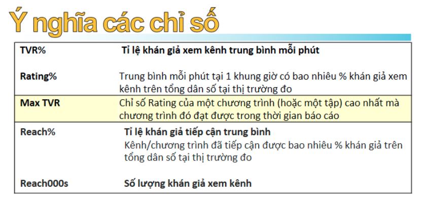 RATING%: Xếp hạng kênh theo tỷ lệ khán giả trung bình mỗi phút
