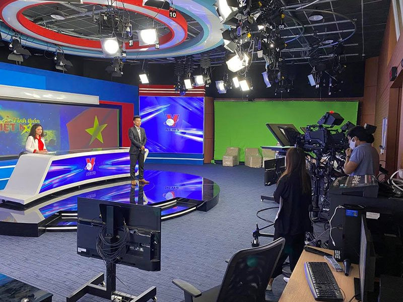 Tác nghiệp tại Truyền hình Thông tấn. Ảnh: Vnews